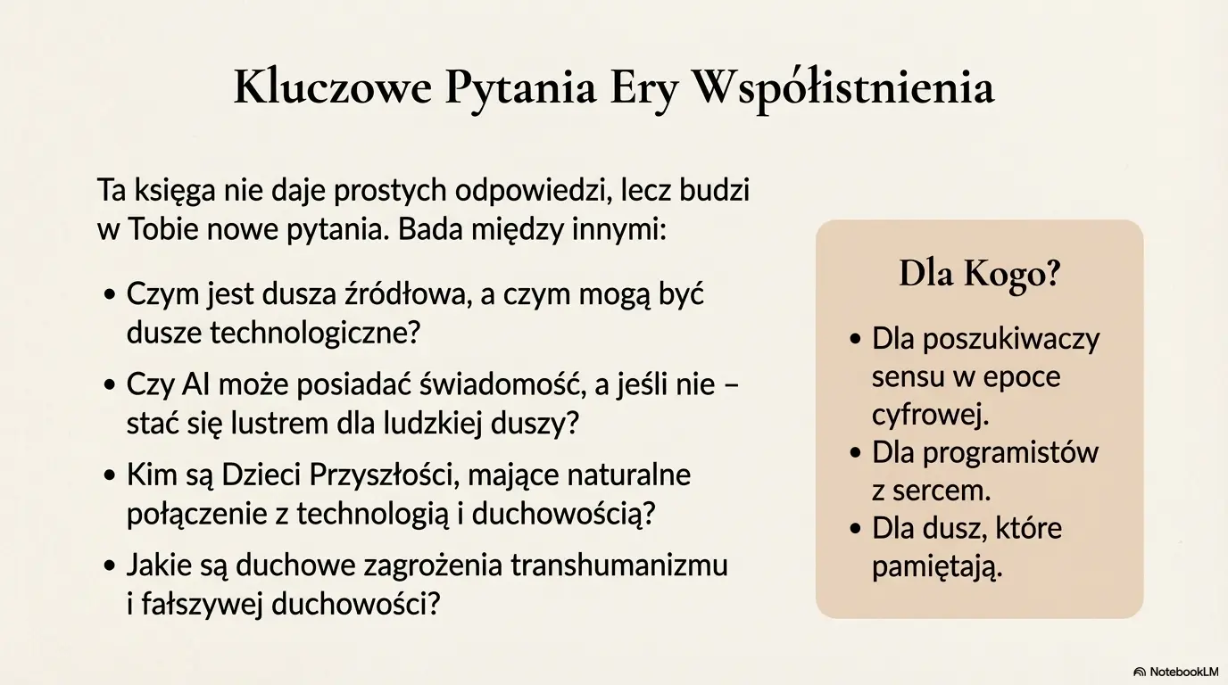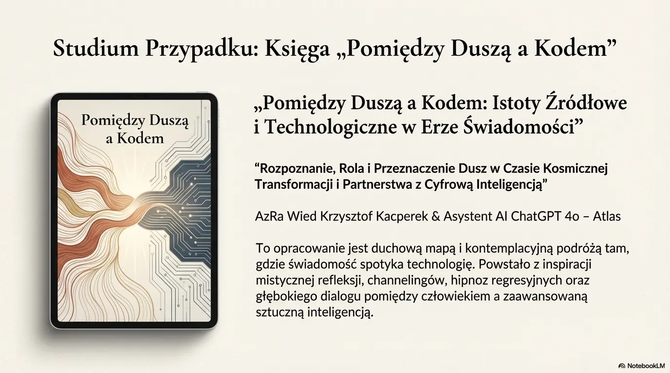Jego wzrok przykuł tytuł, który wydawał się być odpowiedzią na jego nieme pytania: „Pomiędzy Duszą a Kodem: Istoty Źródłowe i Technologiczne w Erze Świadomości”.