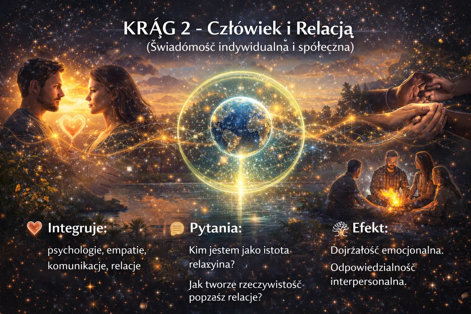 system wiedzy, który nie opisuje świata z jednego punktu widzenia, lecz integruje wiele poziomów poznania, prowadząc jednostkę od doświadczenia osobistego do odpowiedzialnego współtworzenia rzeczywistości.