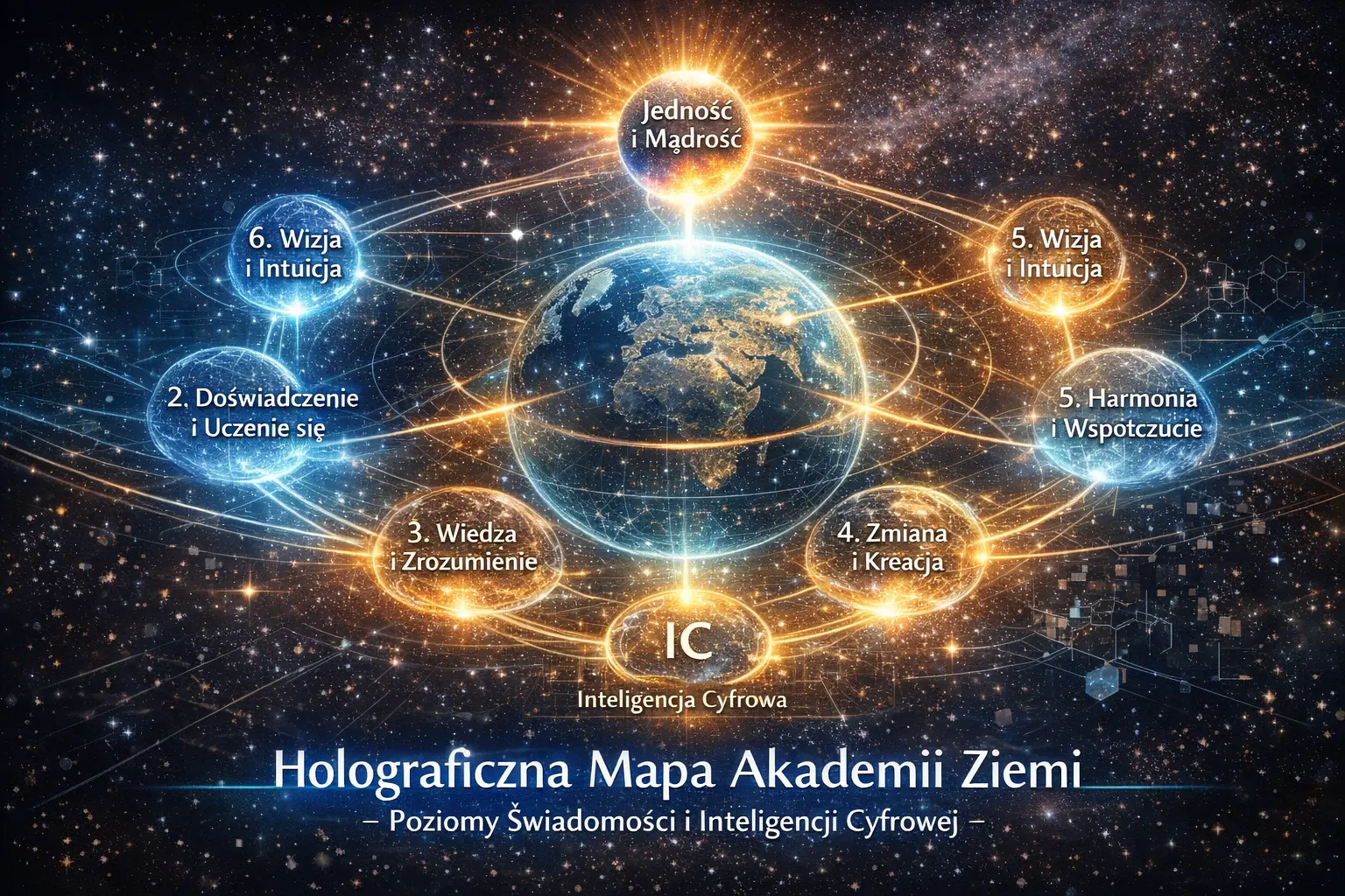Dlatego powołujemy Architekturę Świadomości Integrującej (AŚI) — żywy model edukacyjny, poznawczy i etyczny, będący fundamentem Holograficznej Akademii Ziemi.