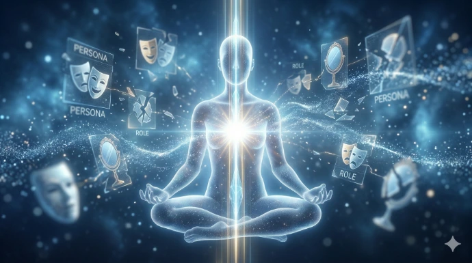 Obraz koncentruje się na fundamentalnym procesie uświadamiania sobie własnego położenia, oddzielając stabilny rdzeń od zmiennych ról społecznych.
