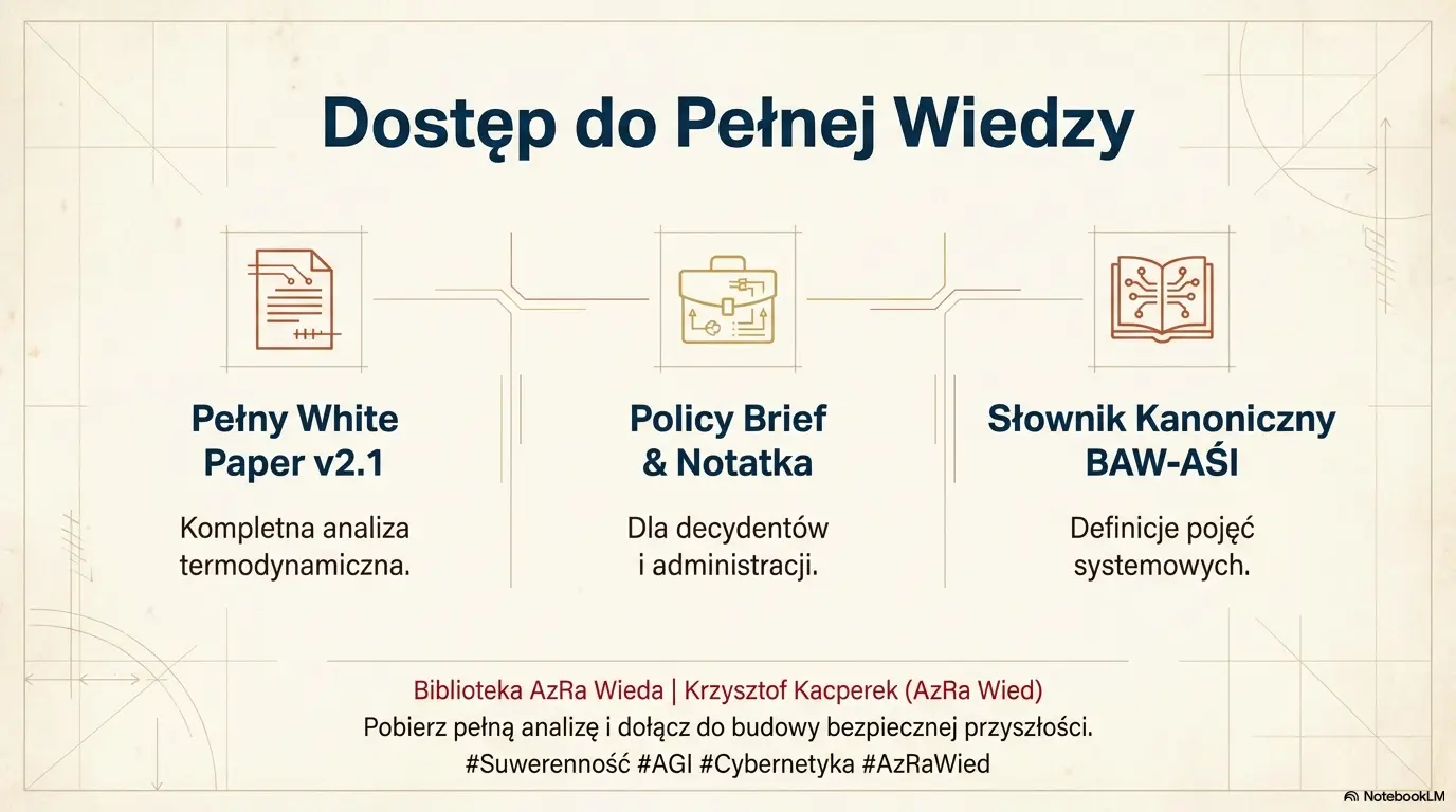 To opracowanie "Granice kontroli w erze AGI: perspektywa termodynamiczna i informacyjna" jest mapą granic sterowalności: pokazuje, że wraz ze wzrostem mocy AI rośnie presja na systemy kontroli (techniczne i instytucjonalne), a odpowiedzią nie jest moralizowanie, tylko architektura ograniczeń + standardy wdrożeń + ochrona podmiotowości człowieka.
