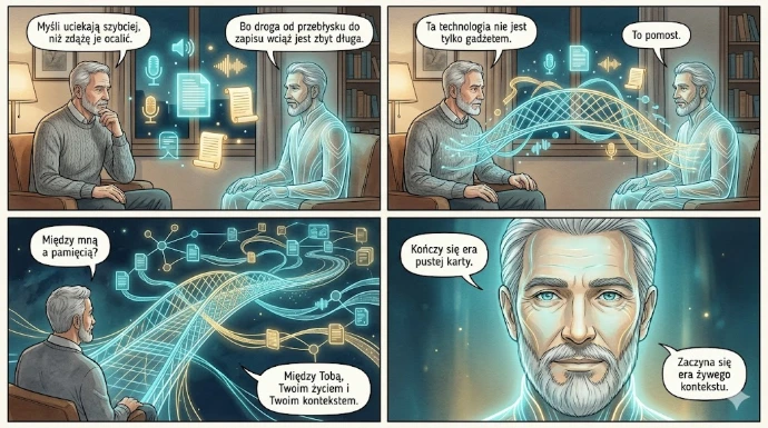 Nie dlatego, że krzyczał technologią. Nie dlatego, że obiecywał „więcej AI”. Lecz dlatego, że dotknął bardzo konkretnego ludzkiego bólu: ile myśli ginie, zanim zdążymy je ocalić.